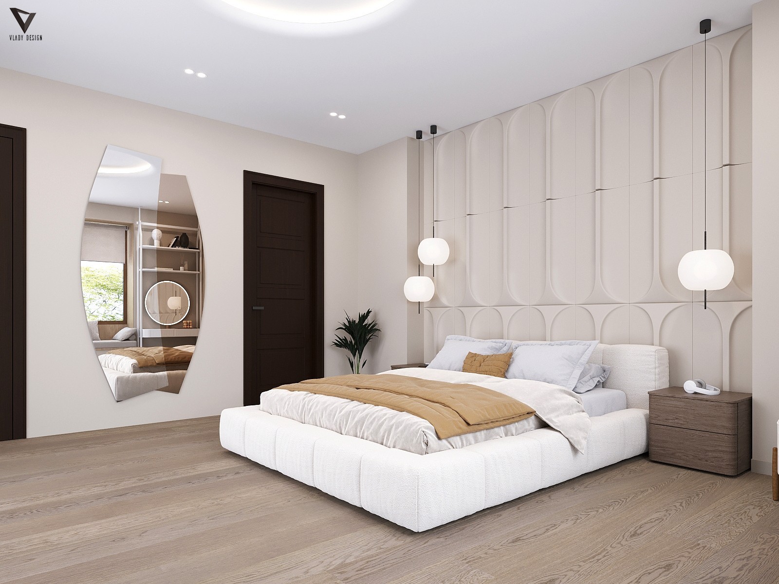 Частный дом в Совиньоне Проект частного дома общей площадью 600 м² в престижном районе Совиньон. Интерьер создан для тех, кто ценит комфорт, приватность и гармонию. В доме предусмотрены собственная сауна, спортивный зал и зона SPA — пространство для восстановления сил и уединённого отдыха. Теплые оттенки, продуманное освещение и натуральные материалы создают атмосферу уюта и современного стиля.
